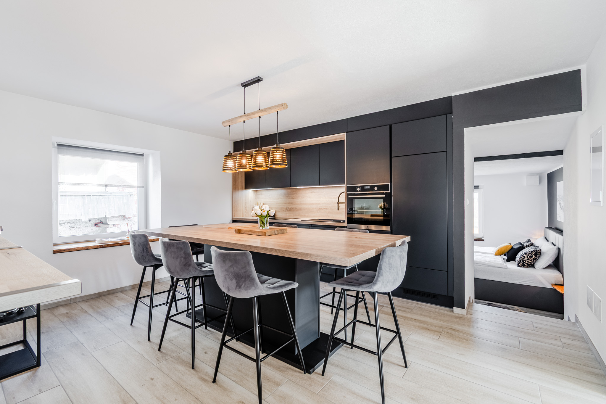 Modern Apartment House with two apartments, mountain-view terraces and a private sauna. We are located in Žaga, near Bovec and the emerald Soča river, Slovenia.